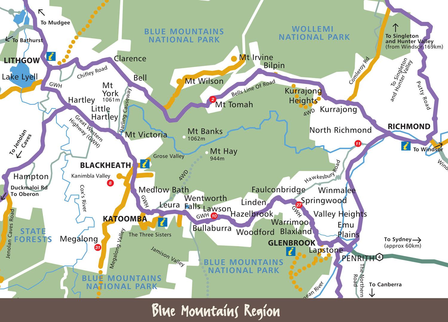 地图的蓝山澳大利亚。 蓝山澳大利亚地图(澳大利亚和新西兰--大洋洲)的打印。 蓝山澳大利亚地图(澳大利亚和新西兰--大洋洲)下载。